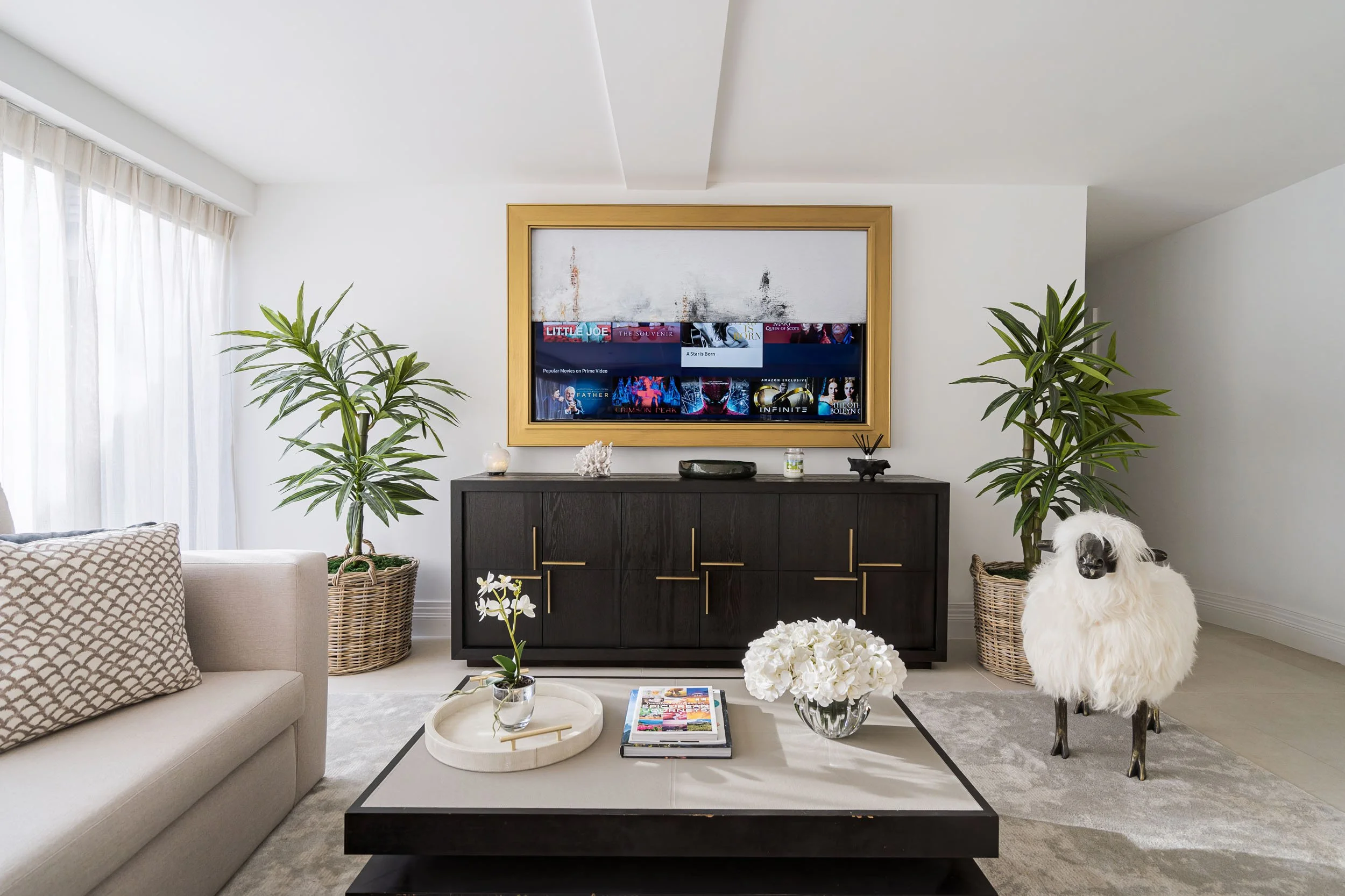 The rotating hidden lift and swivel mechanism gives the client flexibility to rotate their TV to face both the bed and the seating area in the room.